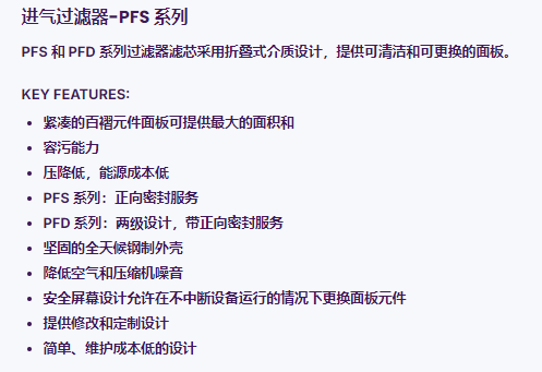 Graver Technologies 进气过滤器PFS系列